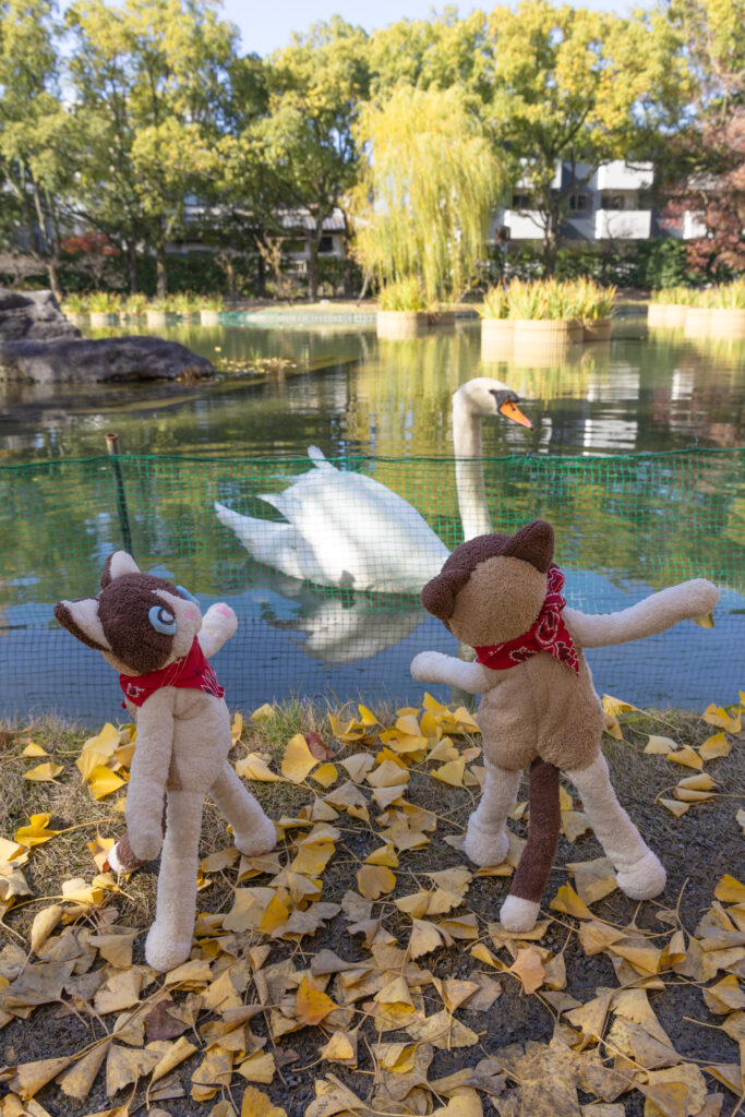 この池の周りはイチョウ並木になっていて