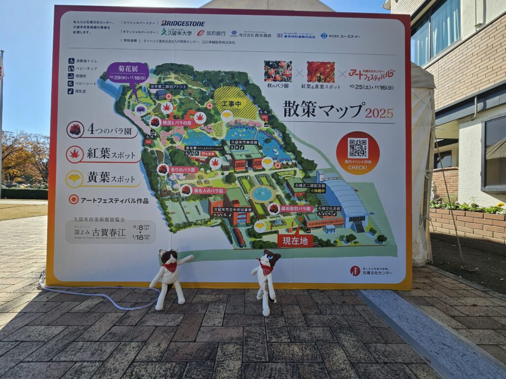 「ここは久留米の石橋文化センター。庭園とか美術館とかホールとかがある、アートを楽しむ公共施設だよ。今、ちょうど紅葉まつりやってるってネットで見て、ここなら勾配もあまりないだろうしあまり歩かなくても紅葉が楽しめそうと思って。」